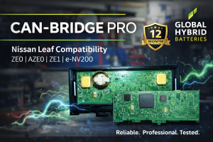 A CAN bridge for the Nissan Leaf is a device that enables communication between the vehicle and upgraded or different battery packs, ensuring proper display and functionality. It has 12 months warranty.